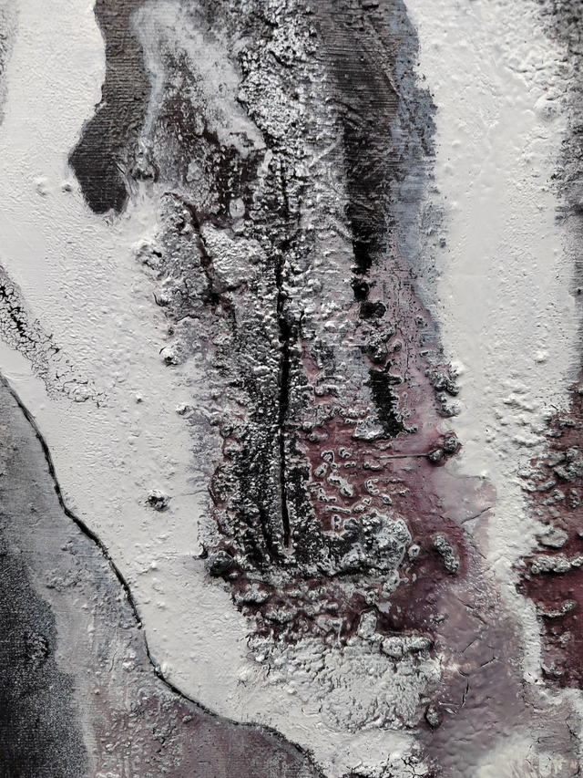 - Mixed media on canvas; acrylics and sand