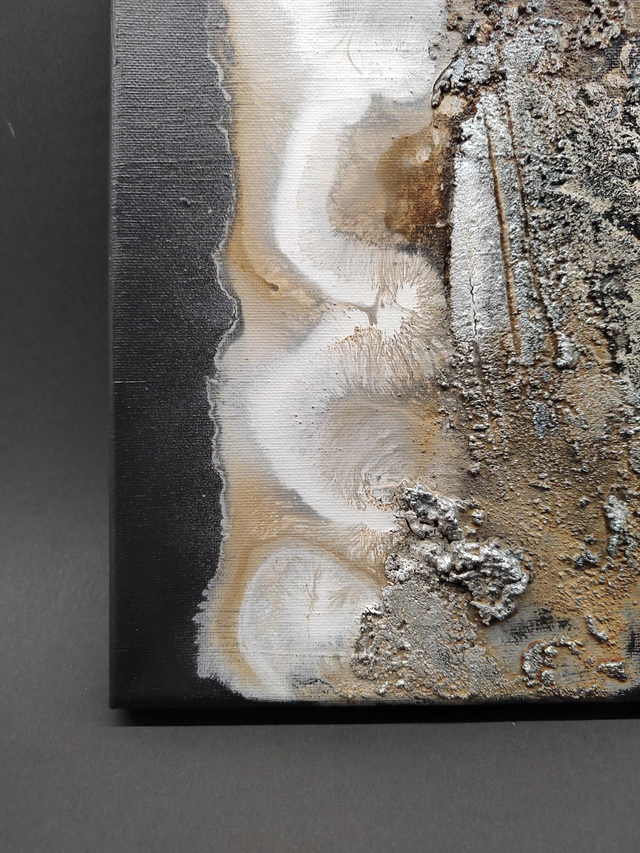 - Mixed media on canvas; acrylics and sand