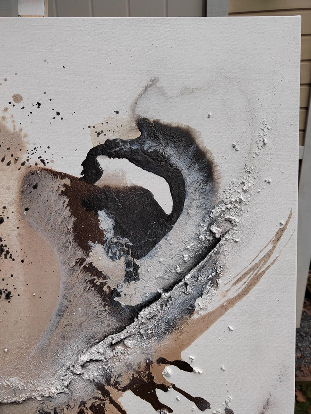 - Acrylics, sand, natural earth pigments, spray